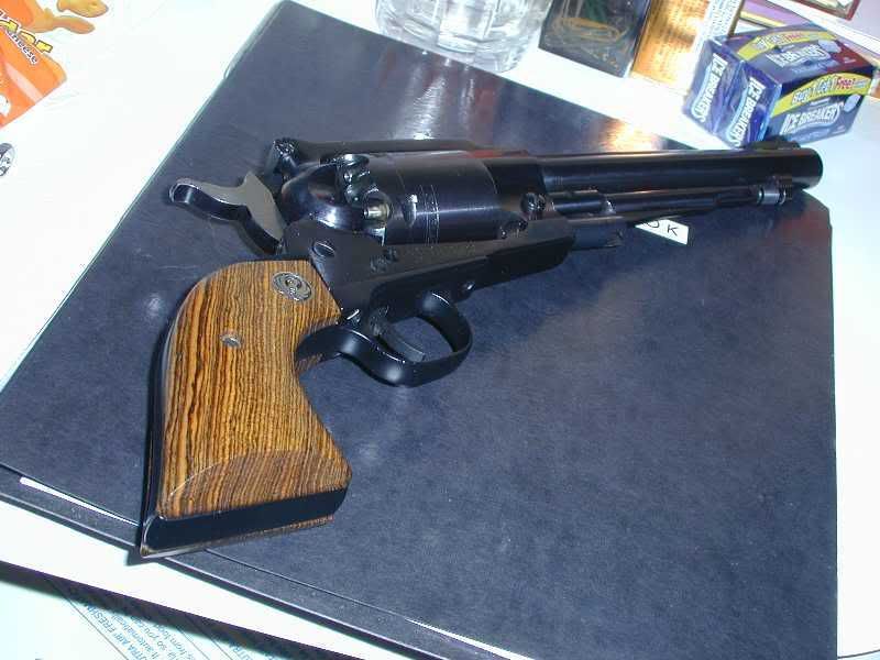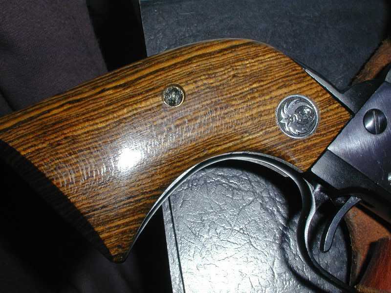 Slacum-finished and on the gun.     Many thanks to "Kutter" for the grip bolt, nut and seat and the Ruger eagles. jack
