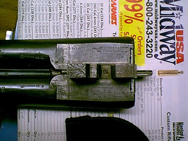 Hi Burch. If your gun is a no-namer with no barrel address but "St. Etienne" on the barrel flats, it probably also has at least the "crown over T" proofmark at the same location. I think there's some info on poudre T and other French proofmarks in the Darne article on the home page this site. I'd be interested to know the going rate on this sort of Frenchie. My local dealer has a 12 gauge marked as above with rib extension and an "L" shaped top fastener actuated by the toplever. Also has a very attenuated pistol grip which sort of gives the game away. Asking $650. Others more knowledgable than myself may be able to provide further info.