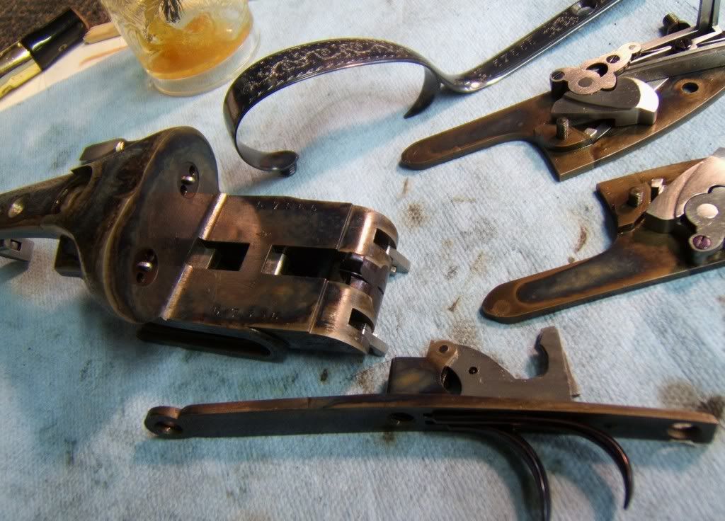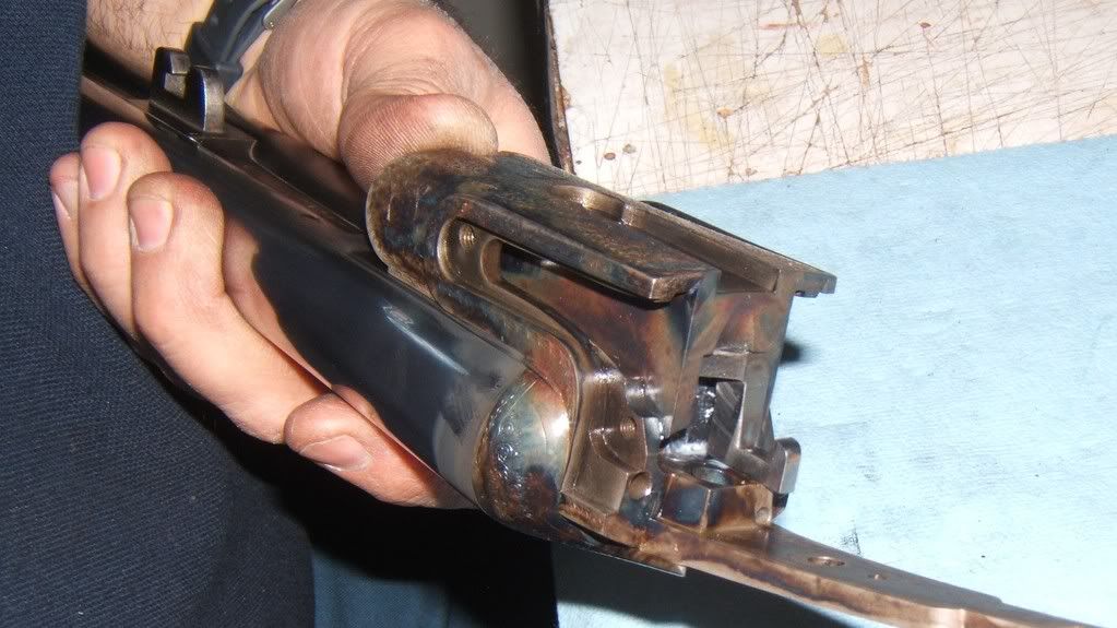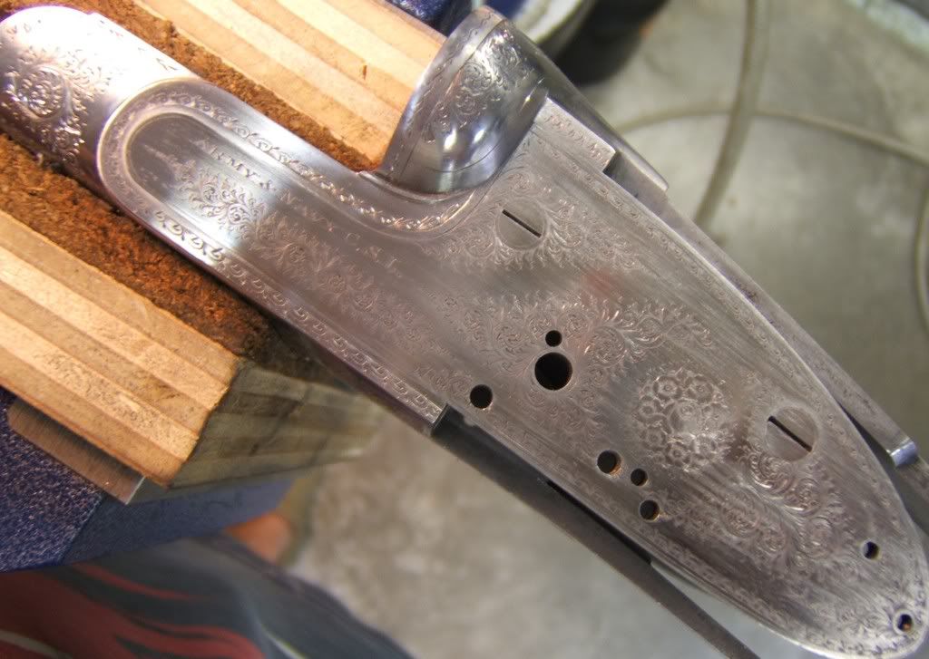 The bbls rang true, the bores were fairly good although not pristine and required minor polishing, and they were also off the face. The action had quite a bit of surface corrosion , ranging from light to heavy in spots,..I annealed the action and fore end and re-cut/re-freshened all of the engraving and made some new screws where required