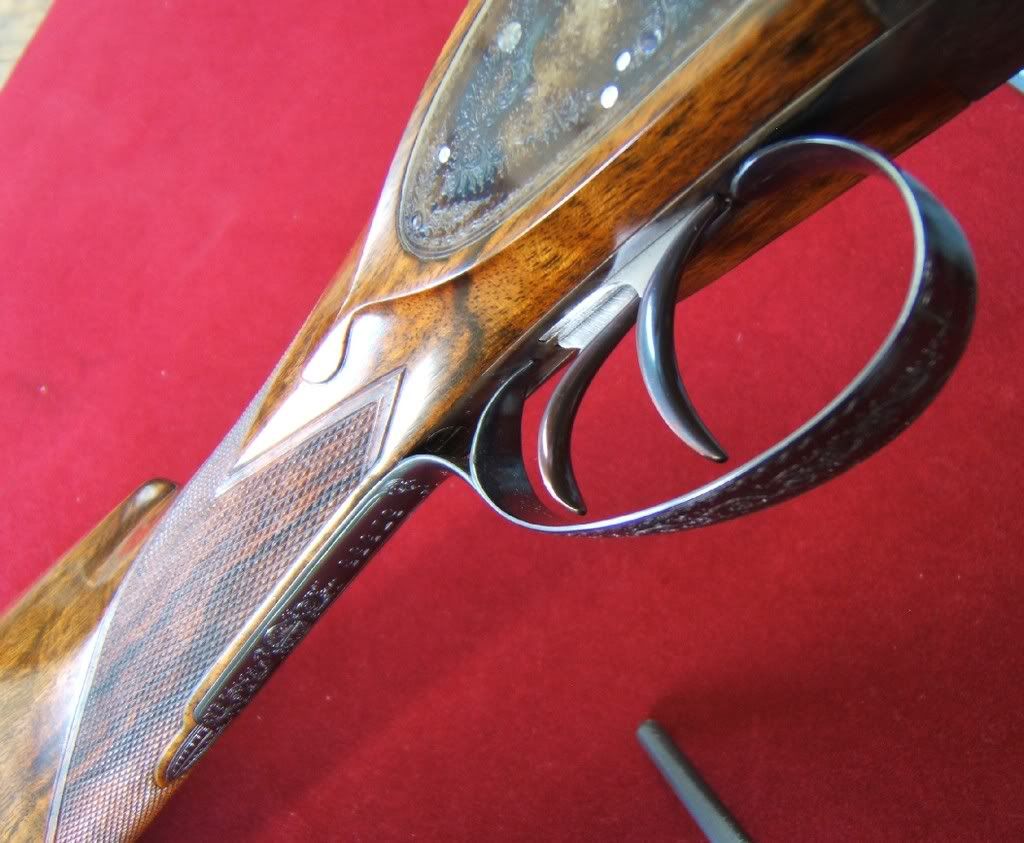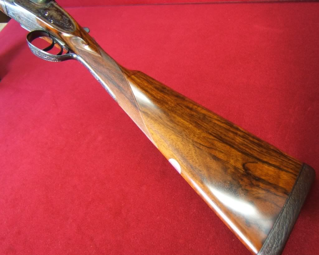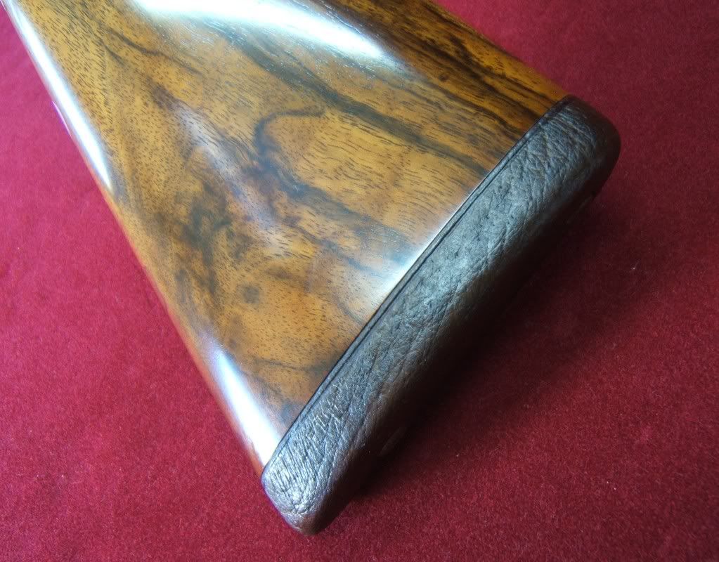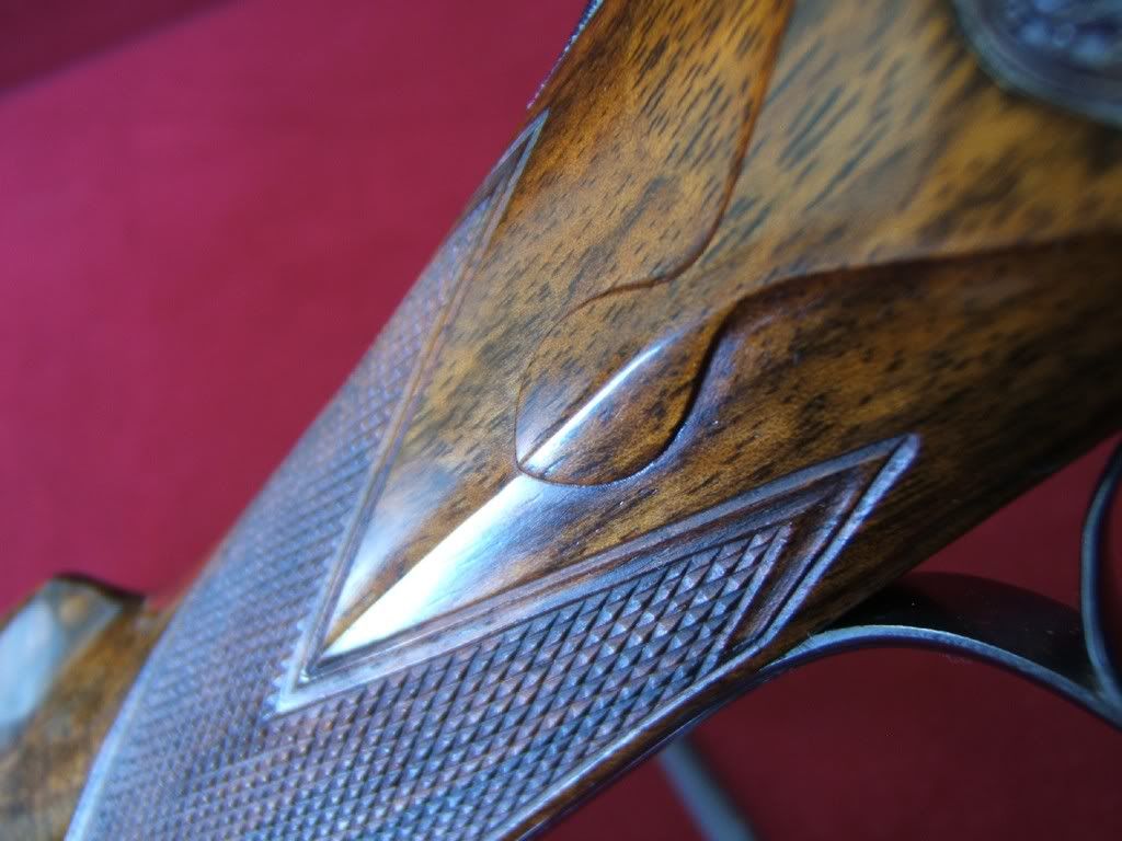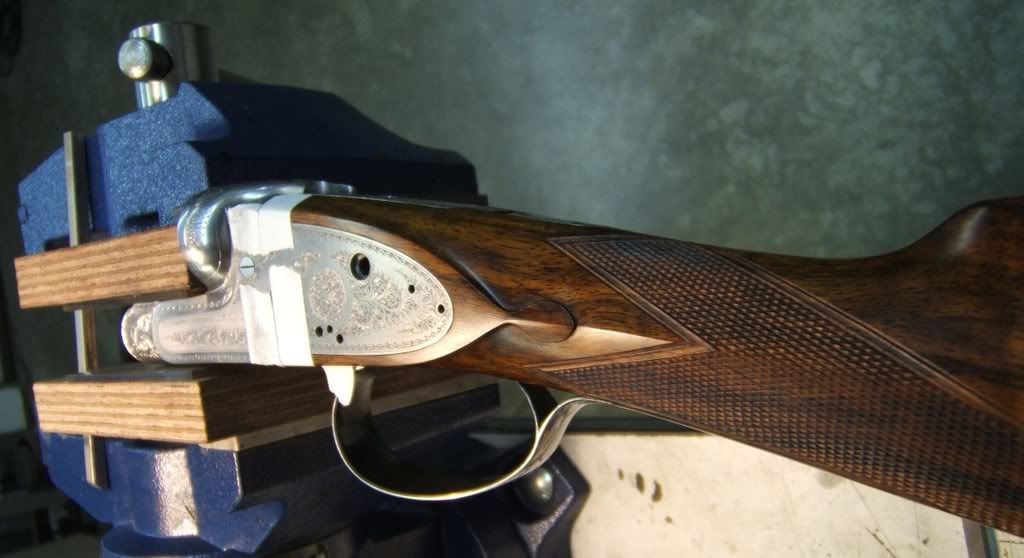 I bought this gun in around 2001,... a 30", 12 bore A&N CSL ( I believe made by P. Webbley & Son) was in pretty rough shape not abused but somewhat neglected,...wood was sound but dark and oil soaked, tear drops almost gone and all the crisp edges around the locks and diamond grip rounded off from a poor refinishing attempt, checkering was also buggered up but not totally ruined,...thank God whoever the "bodger" was he had enough sense to stop there.