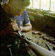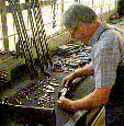 The workshop is a long room where the 20 full time workers can take full advantage of the natural daylight which comes through the window that stretches its entire length on one side. The benches - adjoin the wall that houses the window.