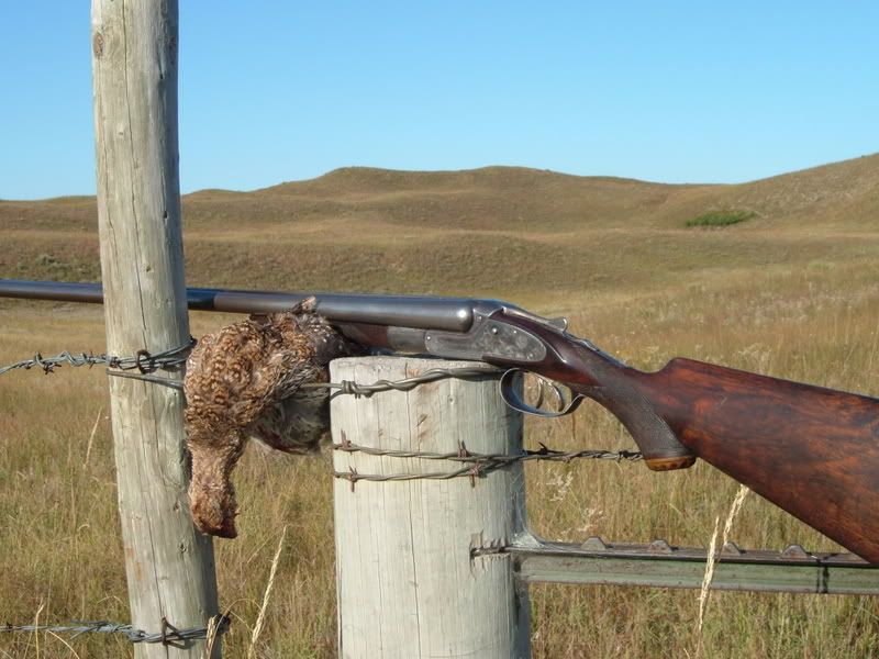 I posted a pic of this gun when I first got it, then it went to Steve Bertram for a general tune up and wrist repair. It came home the other day, and we went Prairie Grouse hunting in the Sandhills of Nebraska. It works!