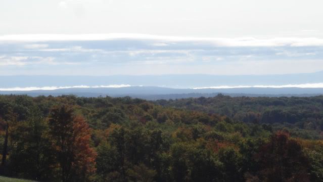 Looking east to the fog lined Hudson valley and the Berkshires beyond.