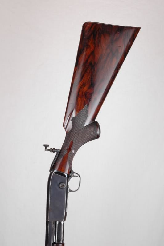 This is another very early Owen rifle, Mark found this one in New York. There are so many things about this rifle that are nothing like what I thought an Owen should look like. If I had not seen the Remington 12C I would not have know Owen did this. This rifle has a schnabel forend tip, horn buttplate, french polish, and rounded pistol grip. At some later date the rifle was sent to Griffin & Howe, had a scope with mount and G&H front sight added and rust blued.
