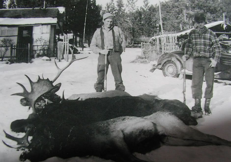 The car, with proper chains, looks like a 1935 Chevy. Do you suppose they brought the moose and elk back on it?