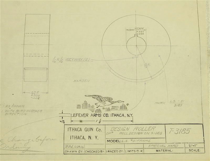 Culling and filing old records, I found these old drawings for various roll markings. Her are a few. Wonder where the dies are now?? Lefever Arms Frame Die.  Lefever Long Range barrel die  And the cutters for NID breech balls.