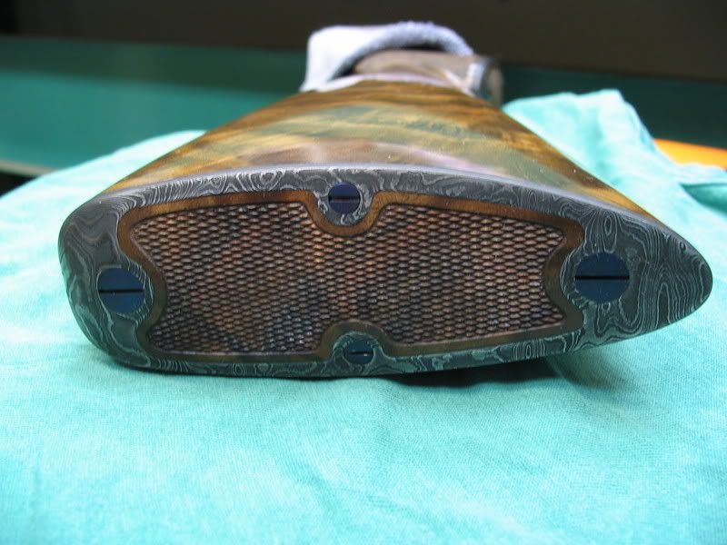 I knew that my friend Glenn was making those great skeleton buttplates, but I didn't know whether he was promoting business at this time, so I didn't mention his name. Now he will be answering the phone for the next two weeks and not getting any work done. The Damascus heel and toe plates sound like just what I need.