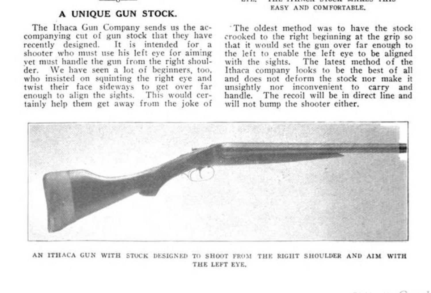 I was browsing through The September 1921 issue of Hunter-Trapper-Trader magazine and came across this blurb on a stock designed by the people at Ithaca gun company.