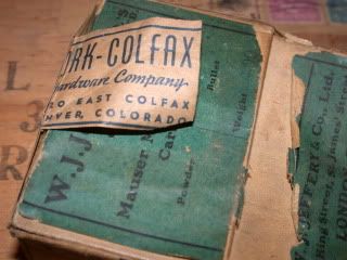 This stuff is pretty neat: An original and still full shipping crate of .280 bullets from the Western Tool & Copper Works addressed to my Great Uncle which he bought in 1941. $27 worth and $1.50 for shipping.   Also a box of .404 Jeffery which could be bought at the local hardware store. Hardware store indeed!