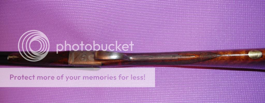 The only other mark that seems not to match the scroll work on the sides is on the top of the strap between the barrels. Less than 2 inches from the action end are parrallel lines. In total, this is less than one half inch in length and less than third in in width. Between the lines, appears several linked circles are present. I've added a photo of this in the link provided that hopefully aids in my description.