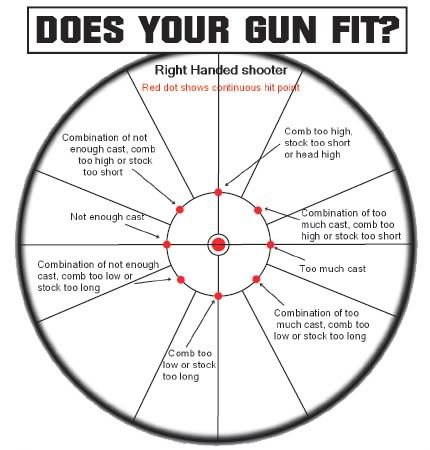 The Churchill method as I understand, suggests that to correctly modify a stock one should use a pattern board and apply a formula. I believe it is: move the stock 1/16" for every 1" off based upon the center of your pattern shot at a mark 16' from the shooters eye; hence The Rule of 16s.