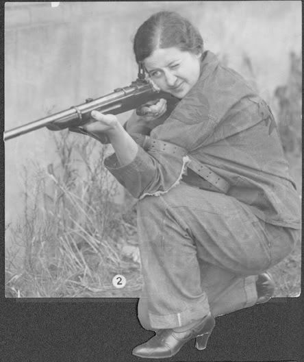 I was e-mailed that photo by the Drexel University PR folks. It is obviously a staged scene but was used to promote their women's rifle team in the late 20s or maybe the 30s. The rifle is an early Winchester 52. Were scope blocks standard? And how would you like to shoot kneeling in those shoes?