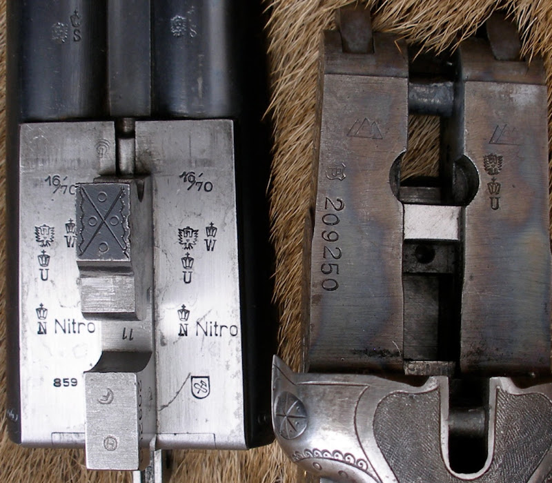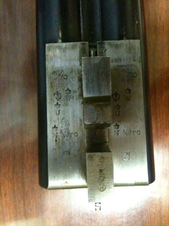 Interesting stamp(s) on the bottom of the rear lug. I'll have to stare at it a bit to possibly see it clearly. The example fits in the difficult post WWII period when components were drying up at the same time(1950-1951??) tube steel, and I'm sure other steel types, were beginning to be sourced from IZH: http://www.doublegunshop.com/forums/ubbthreads.php?ubb=showflat&Number=172670&page=2 . I'm not sure at a best guess of approximately what serial number for Simsom/Thälmann(Ernst Thälmann VEB-Nationalization(1958/1959)/etc. when one starts to see the Russian Spezial Gewehrlaufstahl or weapons tube steel. Any interesting stamps between the flats and the forend lug? Kind Regards, Raimey rse