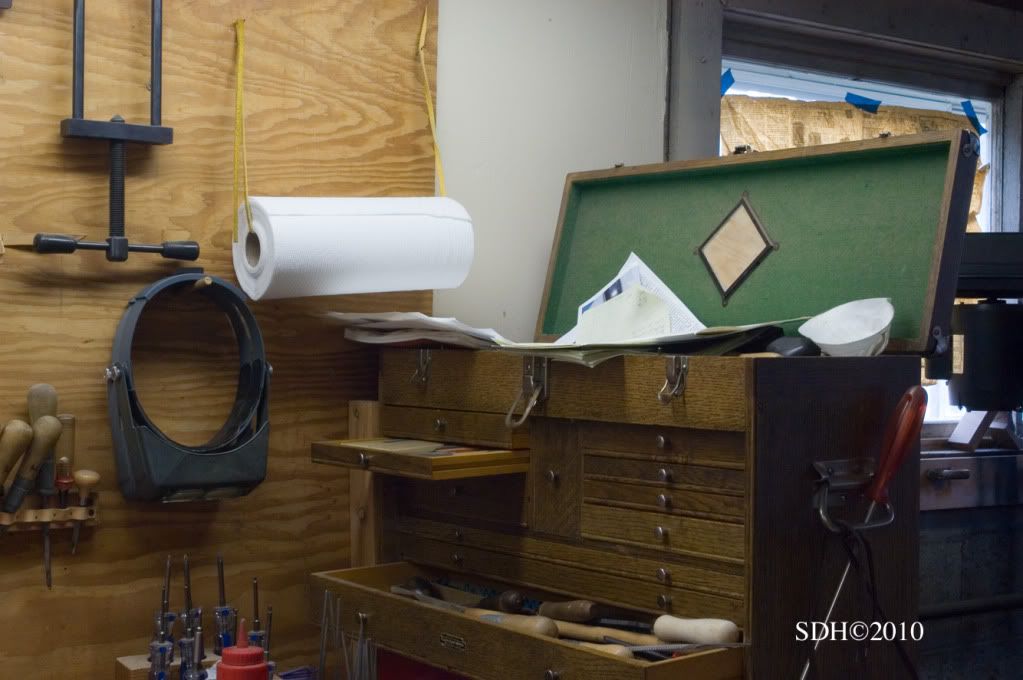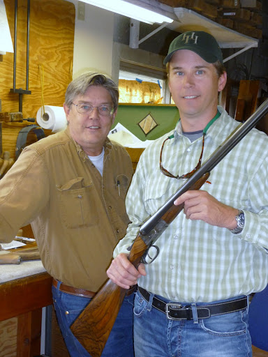 The gun is simply magnificant in all respects and undoubtedly has equally superb handling qualities. I was simply in awe and reluctanly put it back in the rack to continue the shop tour which ensued in a rich discussion of photography and writing of which has made Steven such a valuable resource to the fine gun community. Our visit ended with Steven signing my copy of "Fine Gunmaking..." and a new copy of "Double Guns and Custom Gunsmithing" which I read on the flight back to Dulles. Well, I want to say thanks agian, Steven and that I hope our paths cross again and that someday we can discuss a project of my own or just fine doubles and gun making.