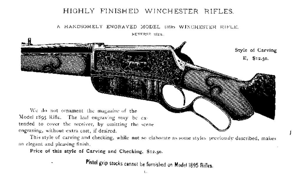 Talk about Winchester pistol grip conversion!!! That's the only split lever, pistol grip M-95 I've ever seen and the lever looks very altered! (Win. Highly Finished Arms Catalog circa 1897, see bottom page note)