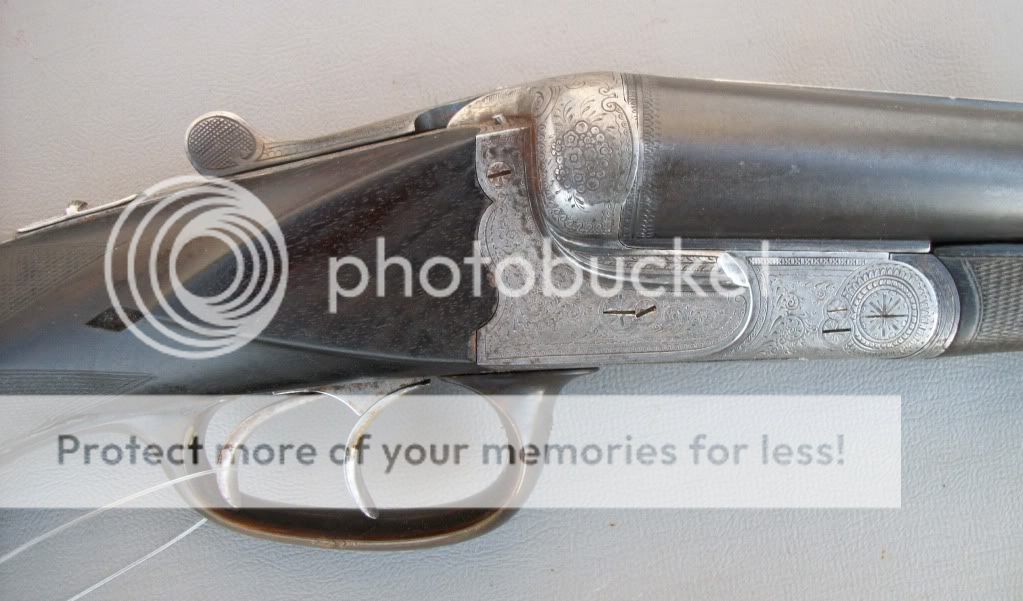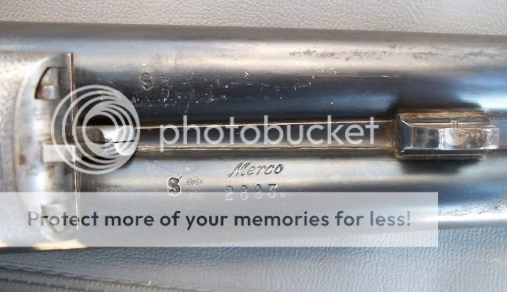 Thanks again for posting hte pictures Raimey. Does anybody have an idea of the value of ths shotgun? The butt stock does have an added on piece to lengthen the pull and there is some moderate pitting on the barrels under the forend. The butt stock is also weeping oil - if I wipe it off there are spots on the wood in about 10-25 minutes. Other then those issues, the gun is nice and tight with bright shiny tubes.