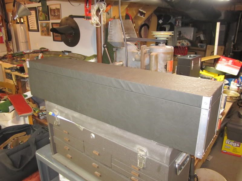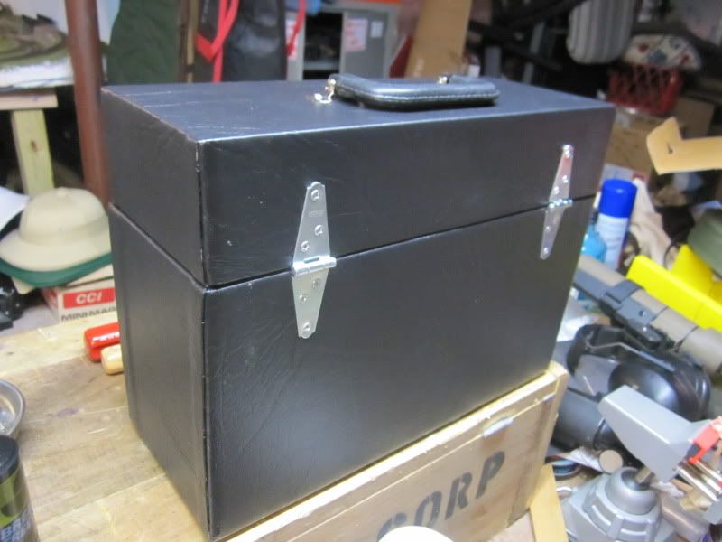 I was thinking the same thing! I wasn't happy with the initial results and have put the project on hold. I can give you some advice. Here is where I stopped. I wasn't happy with the quality of the covering job, and the aluminum I was using for the corner protectors (and as a device to hide the seams) was expensive and tedious to drill and countersink. I am going to shelve it for a while. I used some of my learnings to build another kind of box which came out better. It's a box to hold Tommy gun magazines. What might help you in your attempt: use contact cement as the glue for the cover - I used some 3M 777 spray adhesive which is total crap. Also, cutting out the material in a kind of cross pattern with enough to wrap the corner edges and fold over into the box is key - you can see some of this technique in the magazine case photo. It comes out pretty clean. Also, stretching the vinyl a bit and using a j roller to really press the glued surfaces together helps. There is a great site with lots of latches, etc., http://www.brettunsvillage.com/I'd say practice covering a smaller box first and learn the technique then move to the motor case...or just buy one. Once you buy wood, hinges, clasps, leather straps, felt, vinyl, a handle, corner protectors and metal feet, plus a tool or bit you'll likely need here and there, you will be into the project about $150.