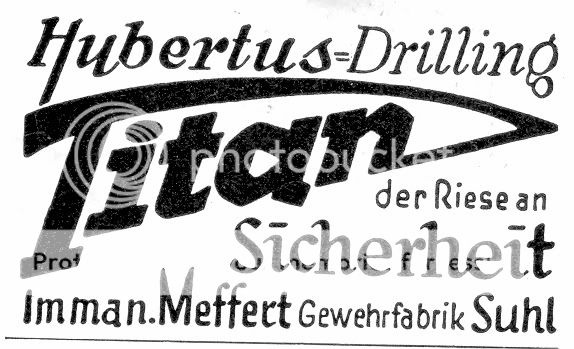 I'm fairly confident that the DRGMs began in 1877 with the DRPs, but I can't say the date of the 1st sporting arm with DRGM. Duraluminium, or Dural for short, were a version of the leichtmetallgewehre which were on the average 10 oz less than their steel counterparts. Titan looks to have its origins in the mid 1920s on airguns, sporting arms, etc. and probably used up until WWII. Some of the drilling adverts you've seen seem to indicate some upper rung variety of "total" safety. The Imman. Meffert firm typically didn't heavily adorn their sporting arms and their motto was that they could turn out 3 production versions to 1 adorned one.
