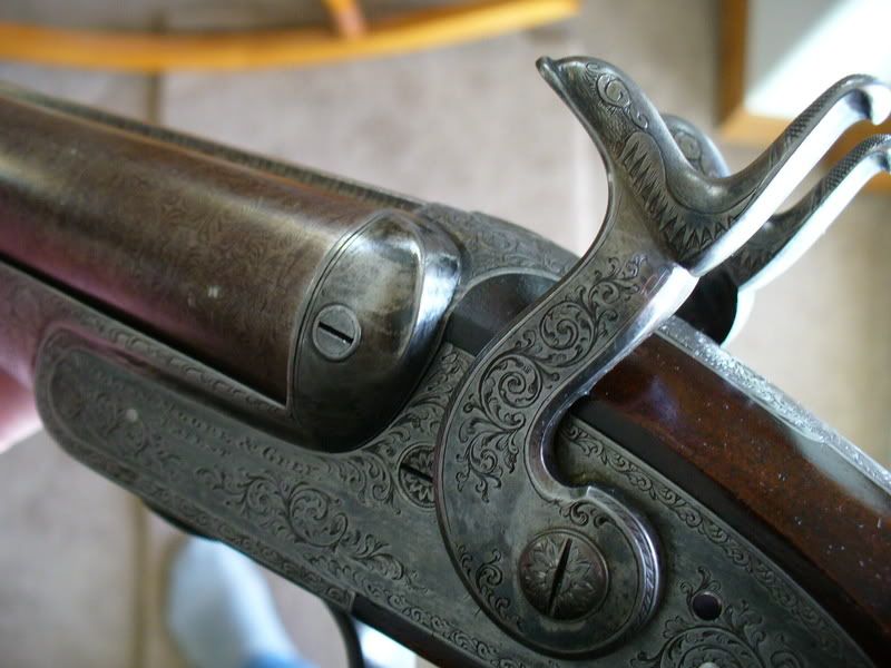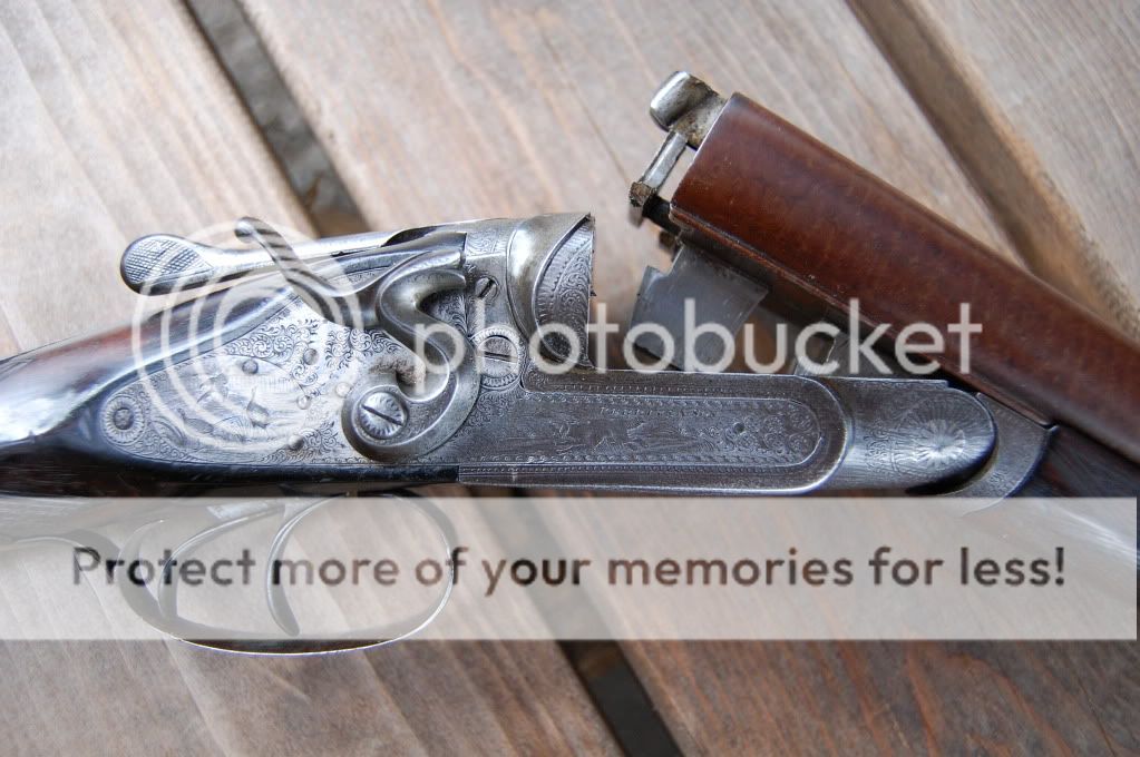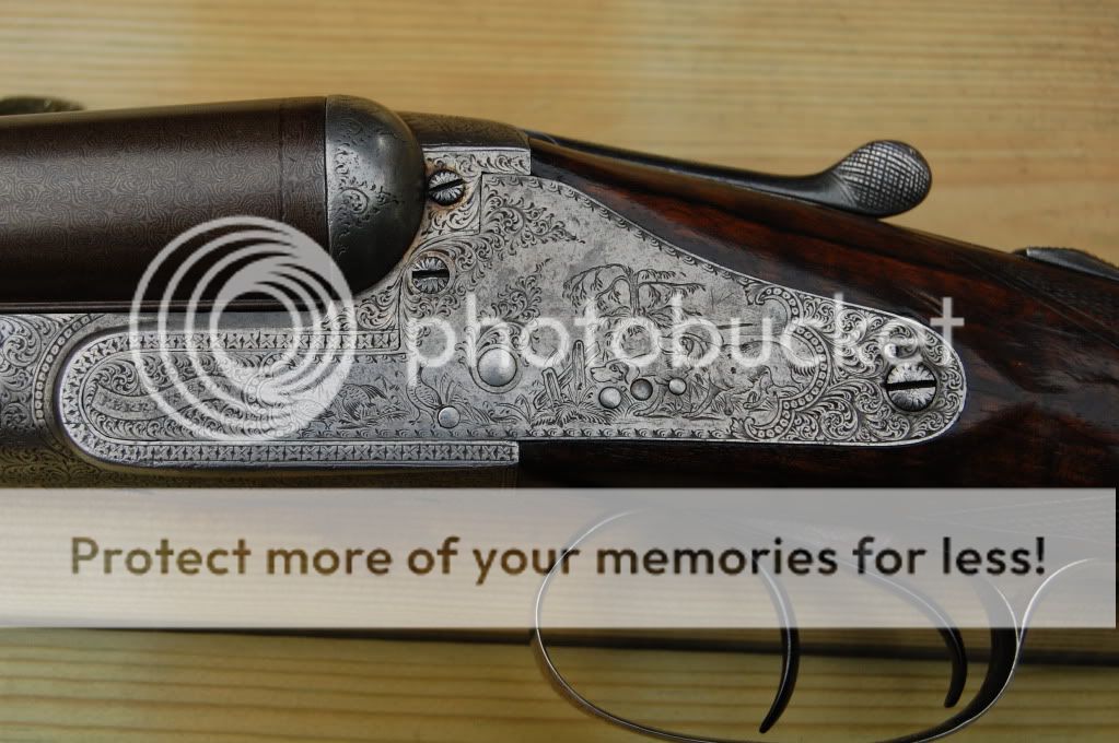 A rare top of the range false hammer gun with dog and game bird engraving owned by Ashley Gibson.