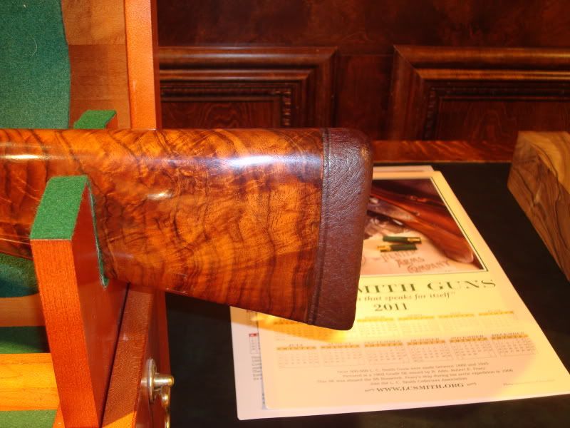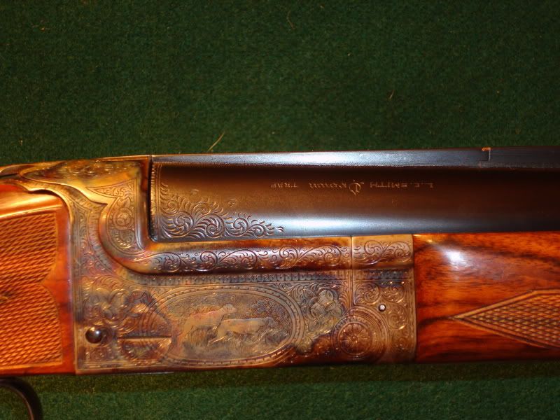 Restoration work on single was done by Kim Alyworth and brother Clark. I wish I had before pictures so you could appreciate the quality of the work. Kim rechased engraving reshaped and refinished wood. Barrel was redone and leather cover pad added by Clark.