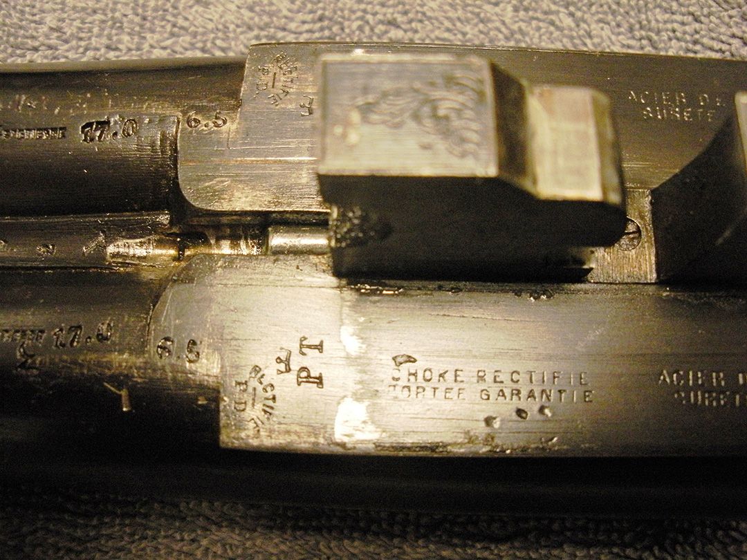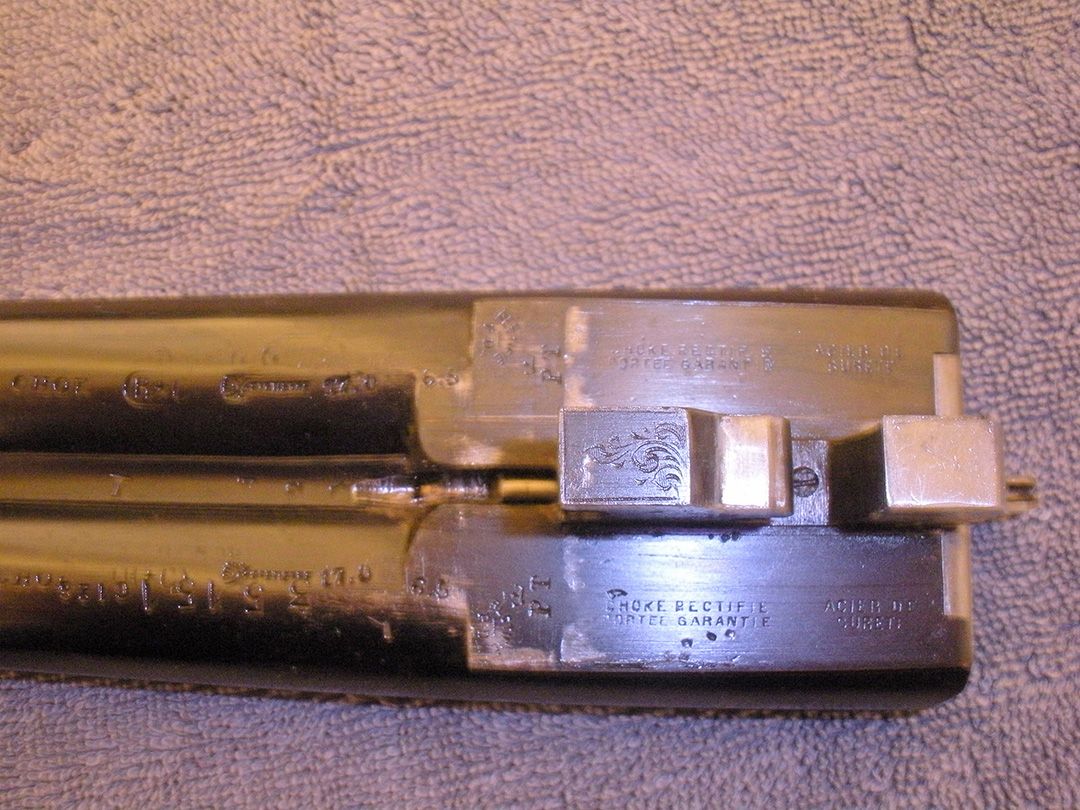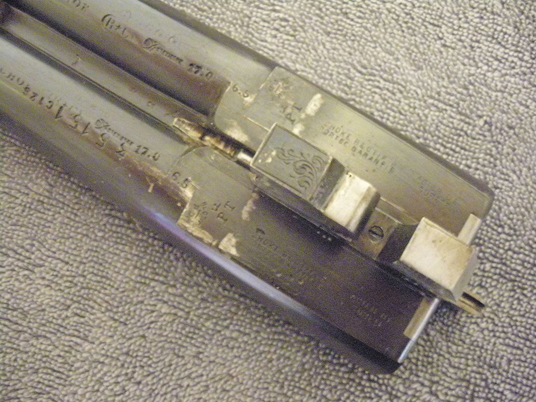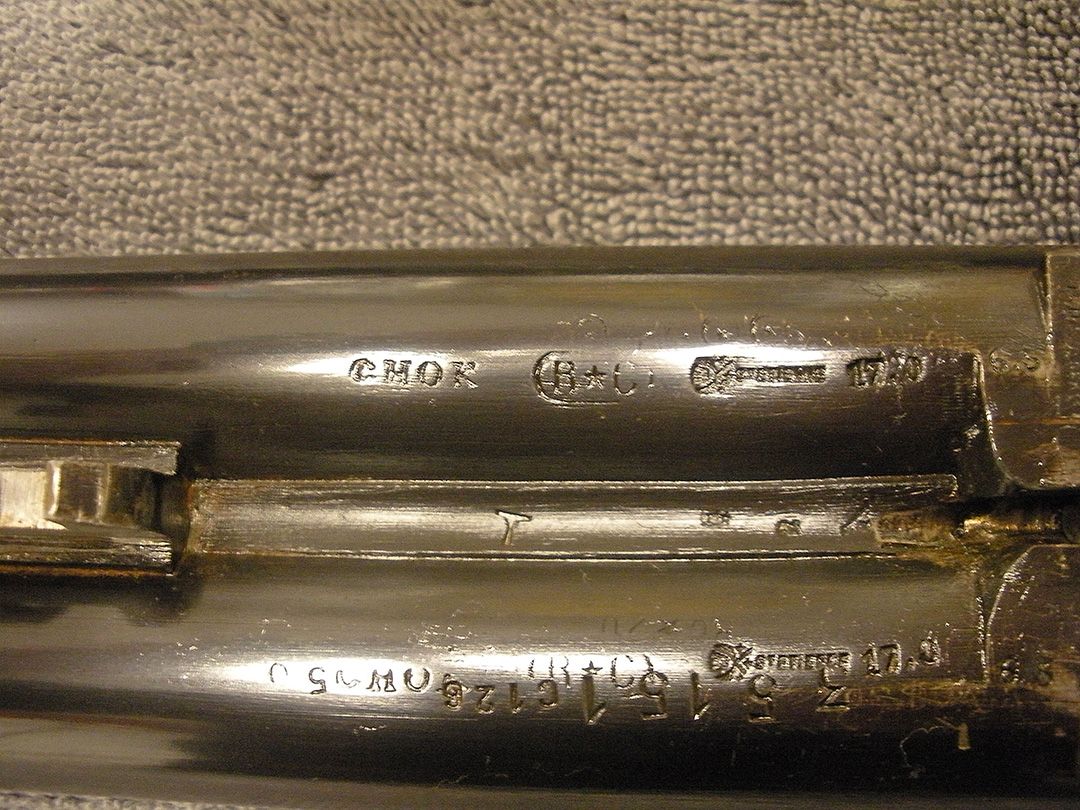 Standard proof for finished gun on barrels, Single smokeless powder proof for gun should be equal to 11000 psi. Bored to 17 gage so it's a bit tight. Choke bore, steel of something (I can't see). Both barrels weight the same.