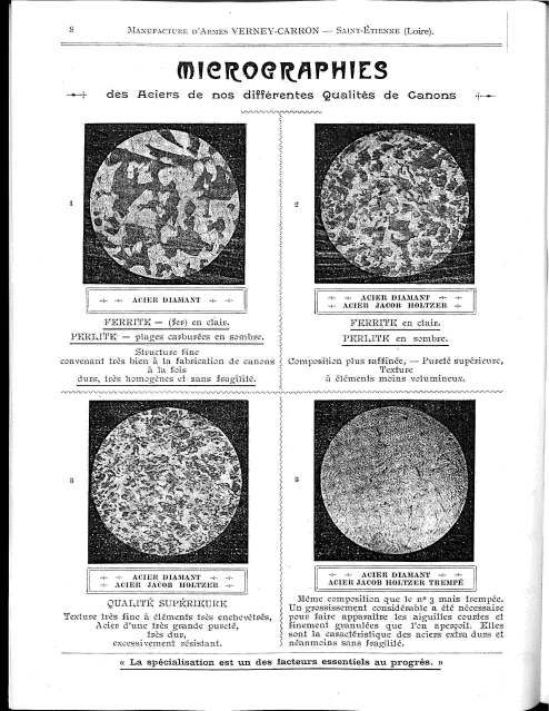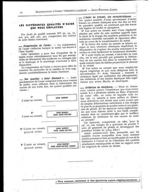 Here are some pages from a 1922 Verney-Carron catalog, discussing the grades of steel used in their barrels. They are in French, unfortunately, and my high school French and limited schedule have kept me from any serious effort to translate. I can email a jpg to anyone interested if the type is not legible.