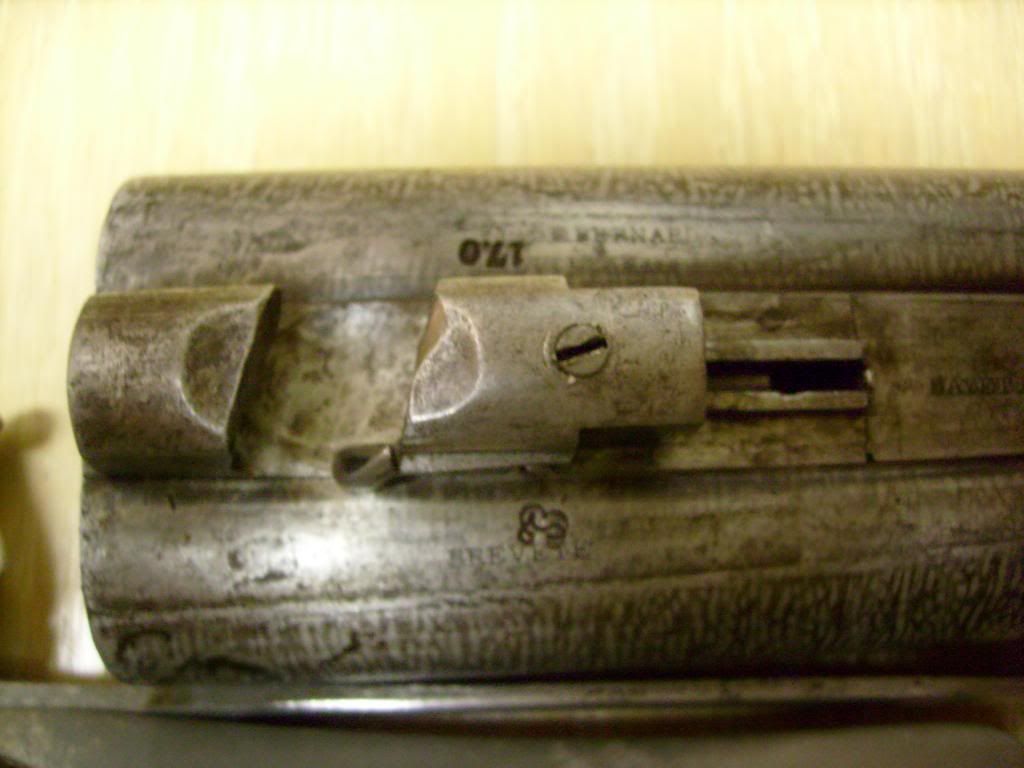 Underside of barrels Bernard, Brevet, Bayet Fres., a mark I can't make out but not the Belgian ELG. and 17.0 on one barrel. John: Is the mark you can't distinguish, not the ELG in an oval, a crowned EB in an oval or a crowned BF in an oval? Kind Regards, Raimey rse