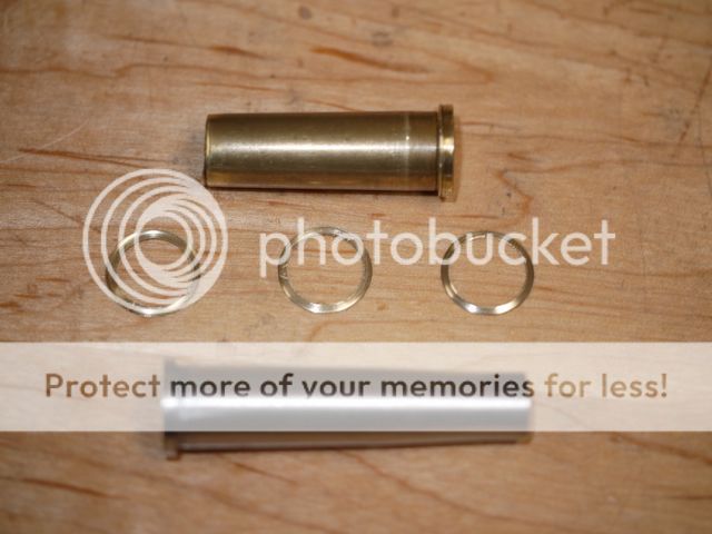Top. The Test case with washer attached and additional washers below. Bottom. A 8.15X46R adapter chambered for the 32-20 cartridge.