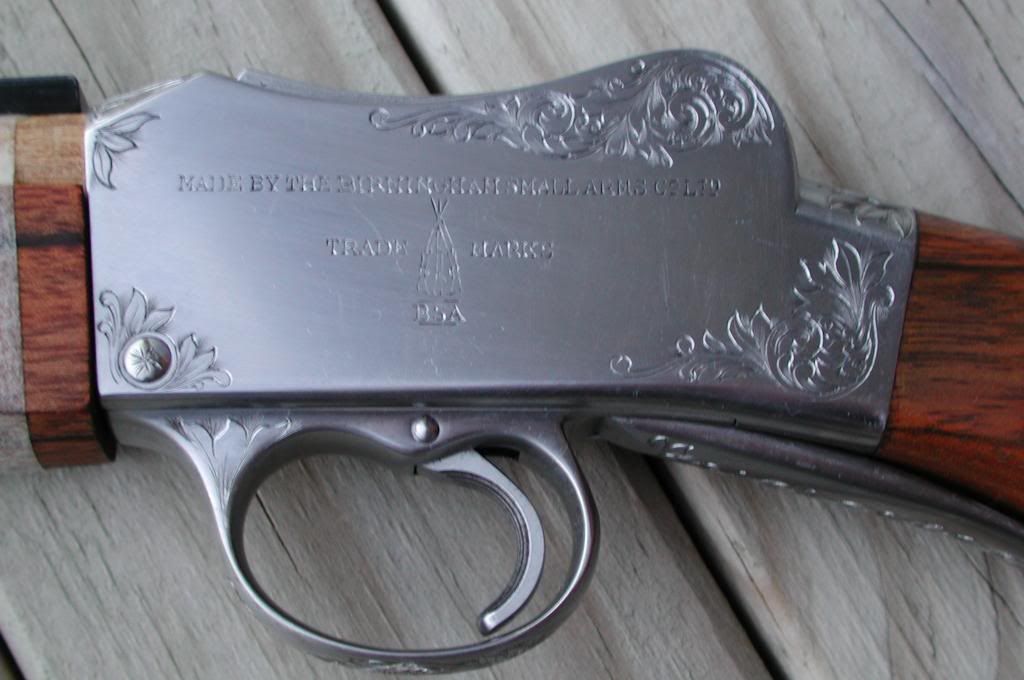 Its a BSA Martini in 222 and the first photo shows it as a work in progress with a piece of wood screwed into the action to get some idea of how it would look with a octagon into a round barrel.