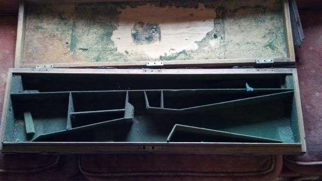 I've had this E.M. Reilly case hanging around in the garage for years and now I think I'm going to try my hand at restoring it. As you can see, the leather is shot but the wood is in pretty good shape and all the hardware is there.