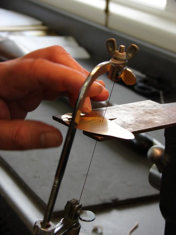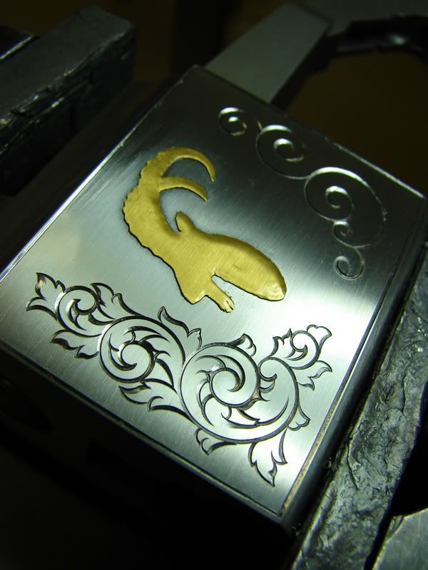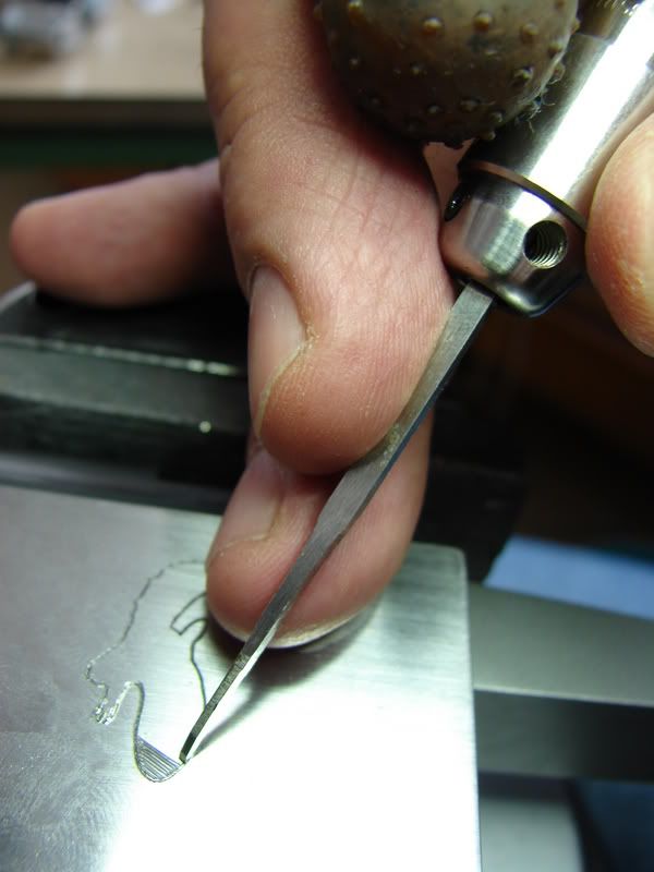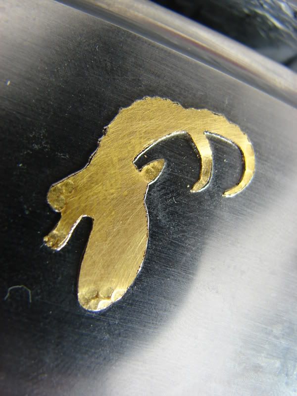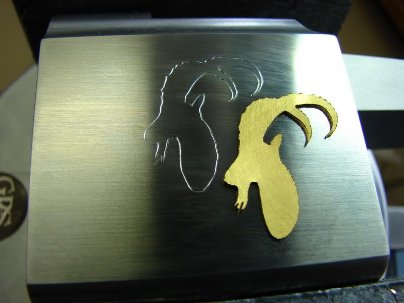 Then we cut a shallow line around the area to be Damascened, and make sure the sheep fits.