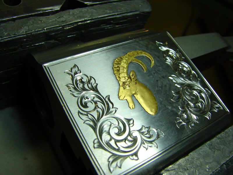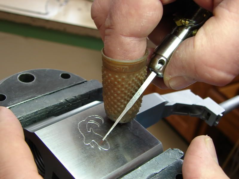 I took some pics of my work recently,a simple job. It is the first completed panel with my new Lindsay palm control. The Lindsay is a patented handpiece that is the latest thing available in hand engraving technology