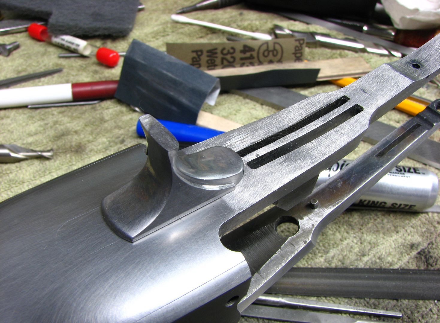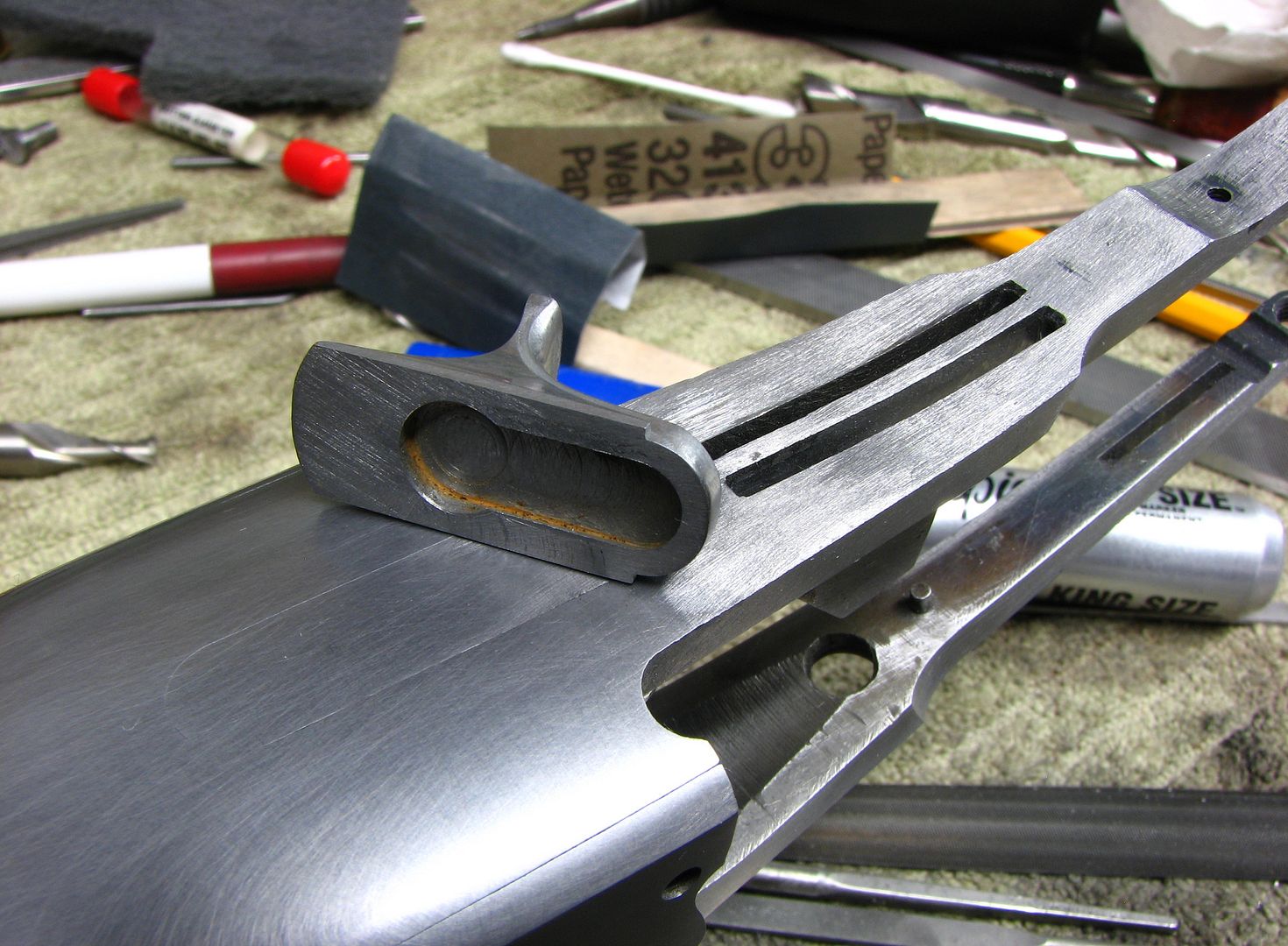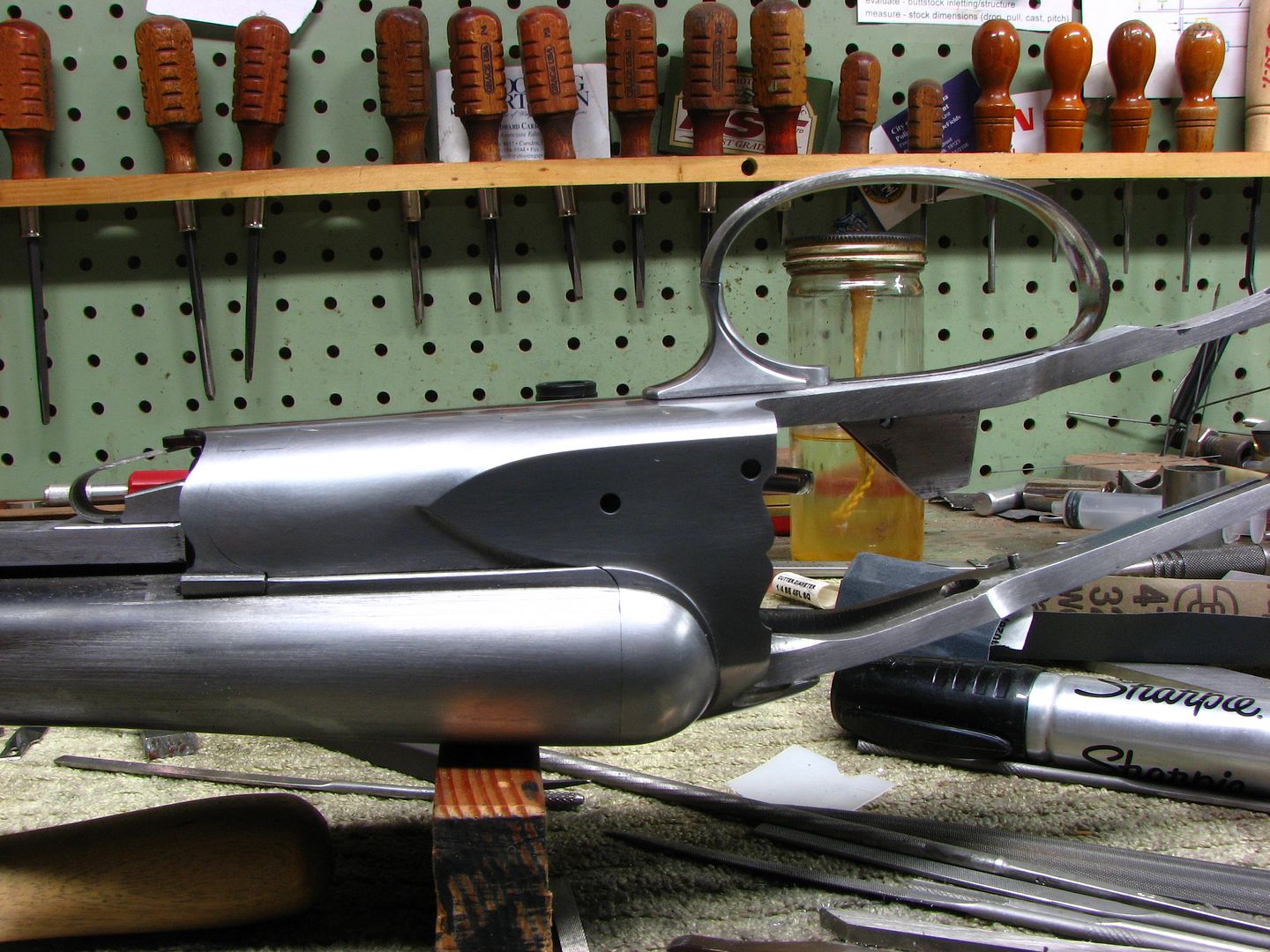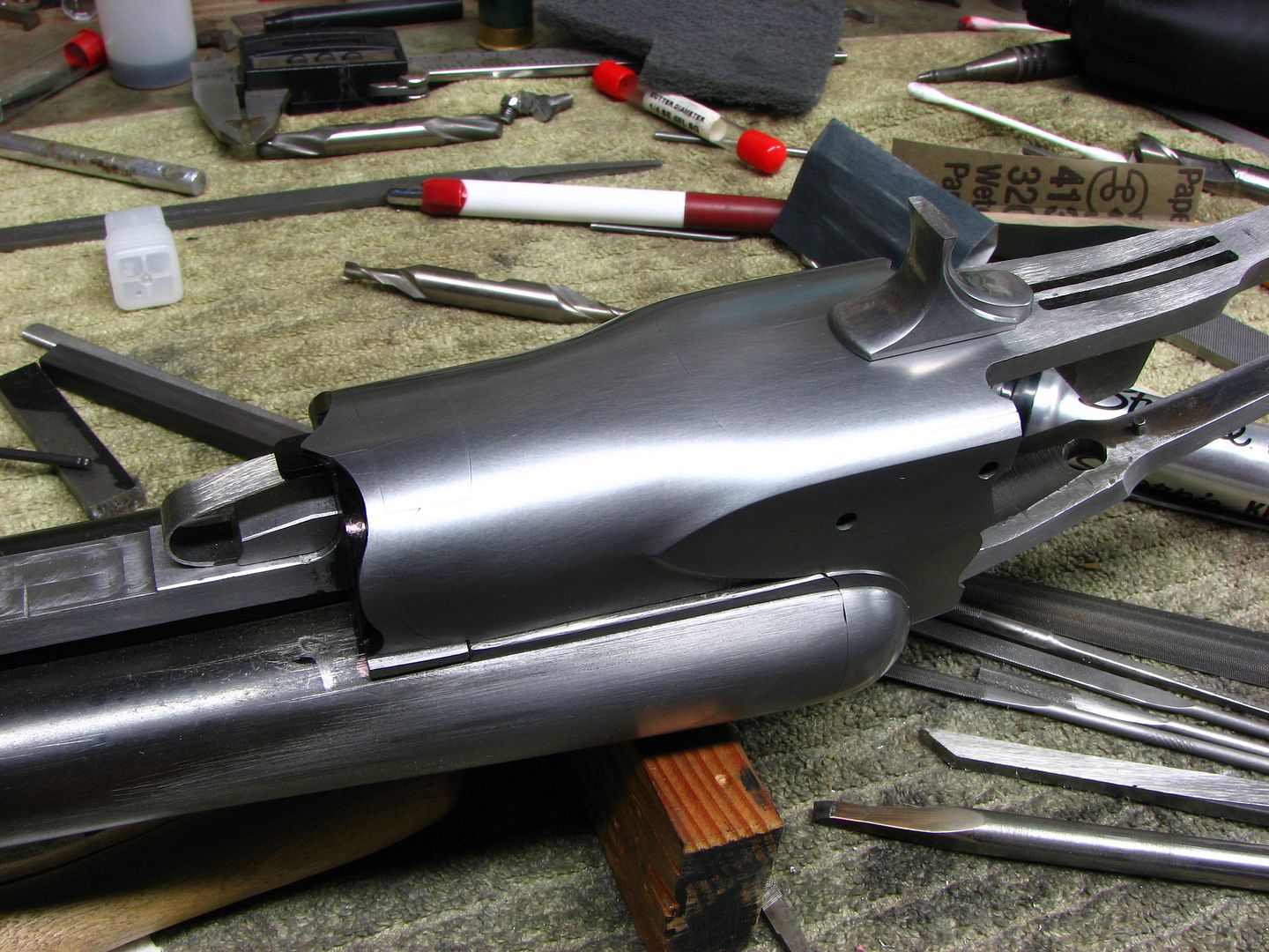 "Get your files ready for another articulated trigger. I hope it won't interrupt the wood fitting on the Becker Fox. Bill Murphy"