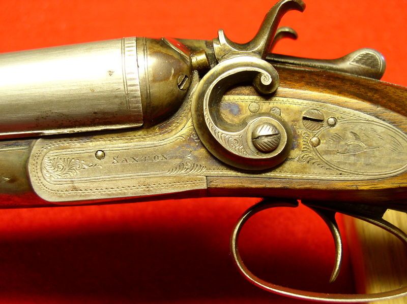 A tough one. I've researched the name as well. "Saxton" appears to be a "Trade Name", used by an importer. I haven't been able to determine which one. The name is found on both Birmingham and Belgian guns. It's similar to other trade names like 'F A Loomis", etc, which were mid grade pre-1890 hammerguns made by someone in Birmingham. I can't remember right off the year guns were required to have country of origin stamped on'em, yours was obviously made after that date. If it was (probably) made "in the trade" you wouldn't necessarily know who made the gun even if it had a recognizable name on it, as that firm may have simply sourced it from "the trade". Nice thing is that the standards were fairly comparable for equivalent grade guns. What are the barrels, fluid steel or pattern-welded? They don't look right, possibly severely buffed or sanded?
