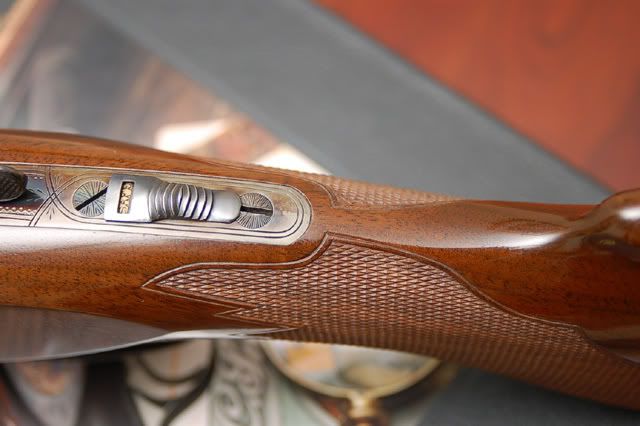 Dustin, A fella up in NY did the work. From what I know he did all the metal prep and Mr Turnbull did the casehardening and possibly the carbonia blue. The fella restoring it also restocked it faithfully except with modern dimensions, but held to all the details of the original including the checkering pattern and forend tip. Murphy, email the pics to me and I'll post them. Just click on my name in the left column and a pulldown will appear, just go to "view profile" and my email address should be there. Here's a detail survey of mine.