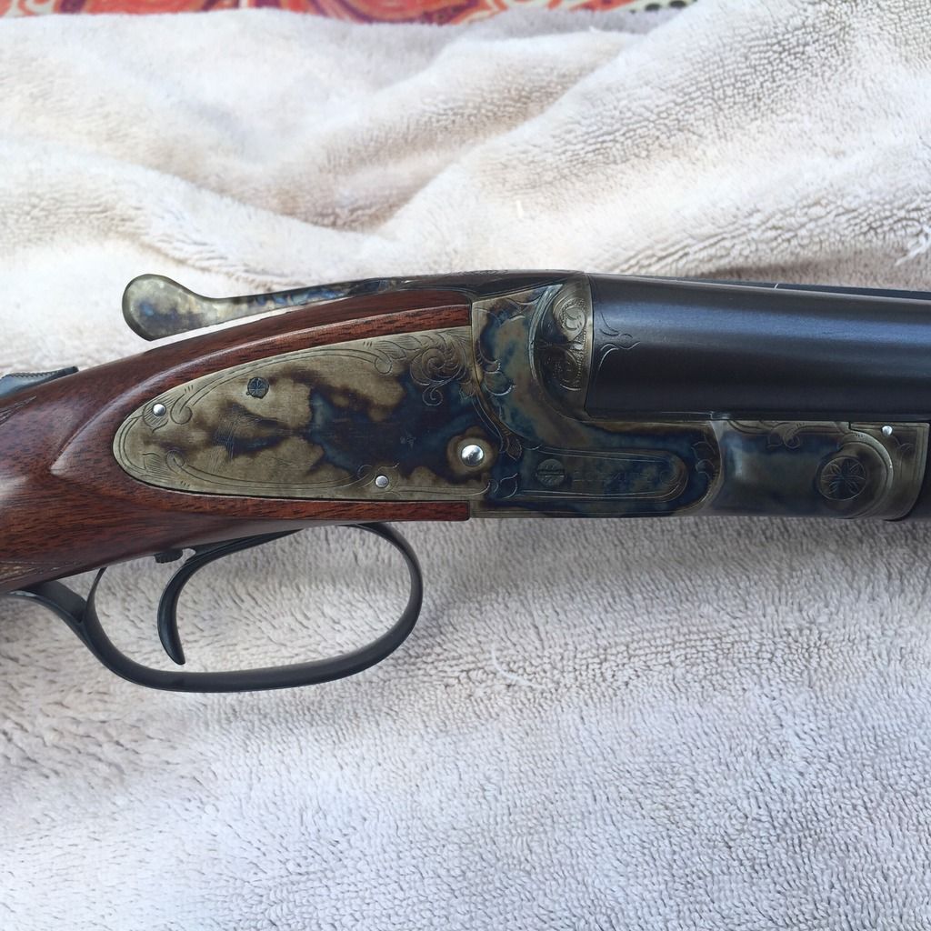 Just got my "restored" LC Smith back from the Smith. I'm very pleased with the end result. Since the gun had been restocked before I had bought it, there was not much collector value anymore. With that said, the gun is a very rare Trap Grade 20 GA (only 348 20 GA trap grades ever made, and only about 120 in the configuration of my gun). The Smith said the barrels were some of the best he's seen on an old gun. We did our best to bring the gun back to factory condition, and I think we succeeded. Can't wait to whack some late season SD roosters with it this December. While I love double guns, I don't have the money to own all the guns and like. However, I'm pretty proud of this old LC Smith. Im even proud of the chicken scratch engraved convicts on the side.