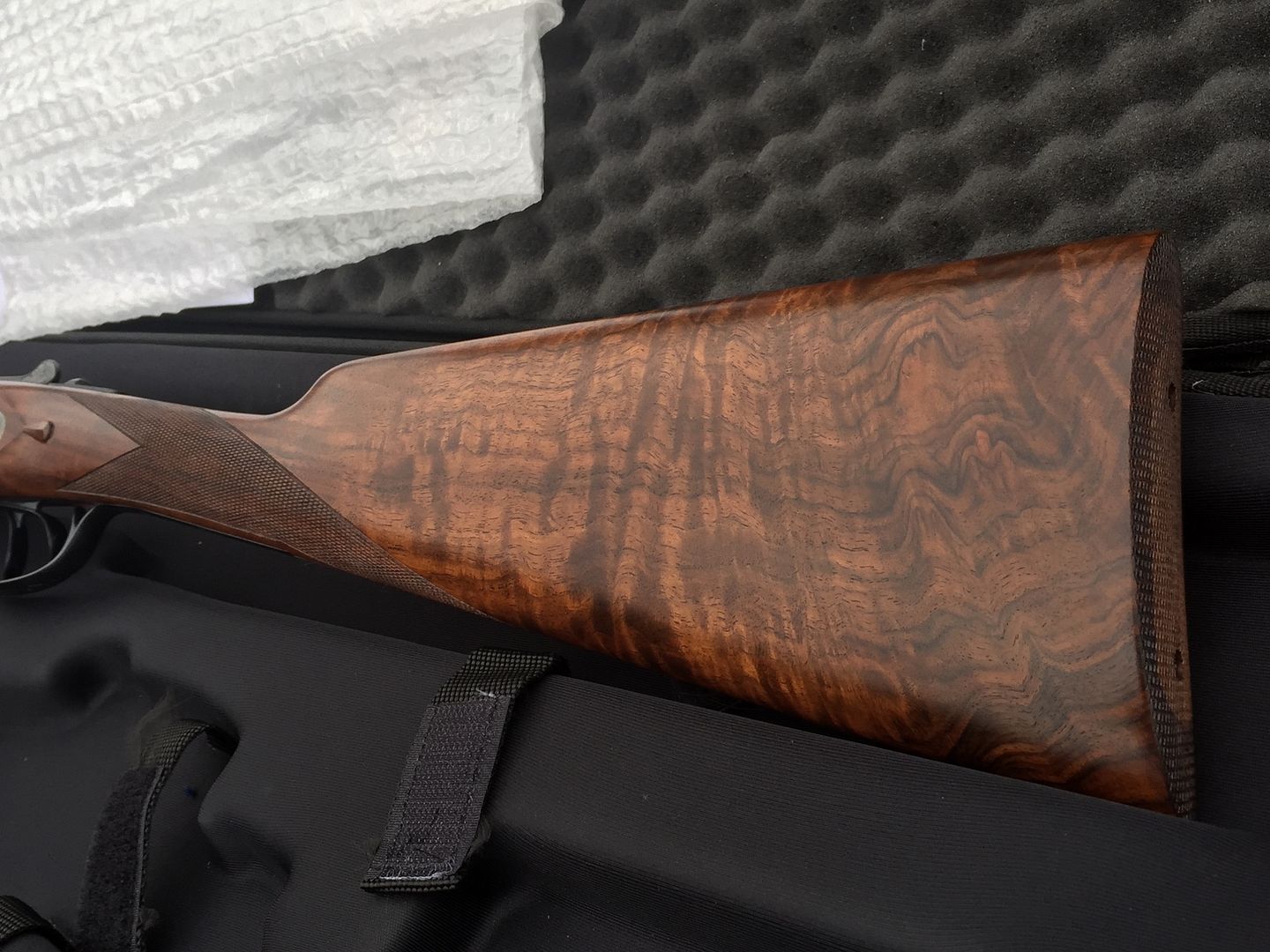 Adam, You really "scored" with that one. I special-ordered a 28 ga. Estate model directly from Marty in California in April. Mine has custom dimensions [16" LOP], grade 4 wood [got to pick from several blanks] and oil finish. The configuration is 30", DT, Straight/Splinter. The intended use is "tall" doves and pheasants. They recently told me the gun would be finished in late August and delivered about a month after that. After seeing your great little 410 [particularly the wood] I will be eager to see what I end up with. They may not be Purdeys....but they seem to be neat little "working guns". Hope you enjoy yours.