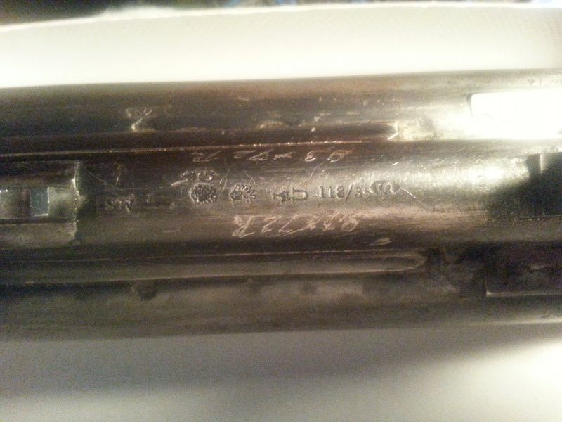 Rifle barrel is stamped with final rifle proof (crown over G) visual proof (crown over U) A bore stamp of 118/35 (cero cast, I know it is the common 9.3x72R and no, I did not scratch the caliber in to the barrel