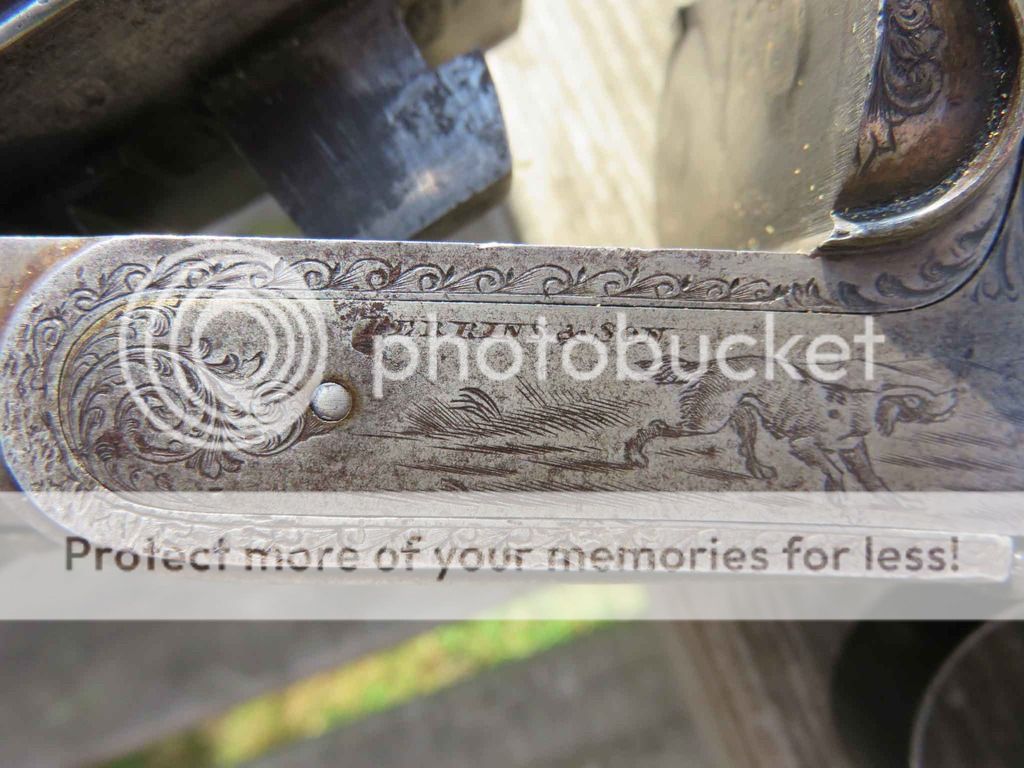 I have been fortunate enough to acquire another Perrins. However this one is going to need a little TLC to get it back spitting fire. She is a 14 bore pinfire, sold originally between 1868 and 1879, so quite late on for pin fires as Perrins were already selling predominantly center fire shotguns by this time. I am sure the more observant among you will have noticed she is missing a couple of rather important bits ie the hammers. I have some on order to try out but i understand there are many different sizes so this could be a challenge. I am sure we will get there in the end. She will need her barrels re browned and then comes the problem of ammo. If anyone else has gone down the route of making their own from brass any tips would be appreciated. In the UK we have rather peculiar rules governing antique and vintage guns. If they are original rather than repro and are of 'obsolete' caliber, which includes all muzzle loaders and pin fires, they do not have to be on a certificate and can be hung on the wall as long as you don't intend to fire them. As soon as you want to fire them and acquire ammo you then have to have them entered on your shotgun certificate and locked away in a gun safe. If you decide not to shoot them anymore you can have them removed from your certificate and hung back on the wall.