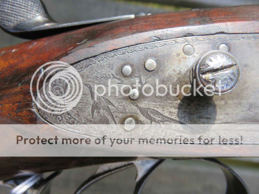 Restoration and woodwork is always a tricky one. The checkering is still quite sharp - probably because it hasn't been used a great deal as cartridges became difficult to obtain. My inclination is to leave well alone a retain it's character after all it is 150 years old. I will probably do one thing at a time - get the hammers fitted - find someone to make me some ammunition - I have access to a couple of original cartridges so dimensions shouldn't be a problem. Once working get the barrels re browned and the engraving on the rib re done as it is very faint. Perrins were only at Mealcheapen St from 1868 to 1879 so I feel it is important to retain this information as it adds provenance. Then try it out on a few pheasants! maynot be this session but perhaps I may get the opportunity if I delay the rebrowning till next summer - watch this space. I was really pleased to see the screws still in place - not sure why the hammers were removed unless someone had been dry firing it and broken them.