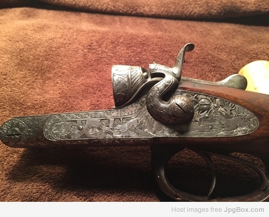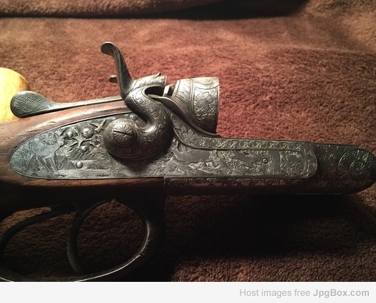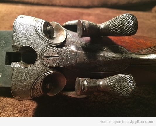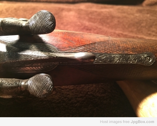 Good evening Raimey and Sam Ogle. I was researching the forum and found your old post from 12/28/15 of Sam's J P Sauer & Sohn 16Ga model V hammer gun, (I posted the link below). The serial numbers are only 52 numbers apart (mine 36490, Sam's 36542). The frame design, locks and hammers are the same. The water table on my gun also has a large and a smaller crown. The engraving is carving relief in both guns and although different, it has some resemblance. Could it be that it was executed by the same master? Mr. Ogle, would you be so kind as to post some pictures of of the frame (top, bottom, sides) and water table and also the butt plate? I am curious if it is horn like on mine. Are the barrels original to your gun? http://www.doublegunshop.com/forums/ubbthreads.php?ubb=showflat&Number=430502
