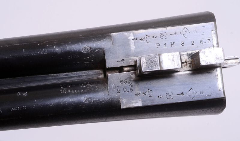 With the 2 muzzle constriction over bore markings on the right (only?) barrel it may have been reproved after honing