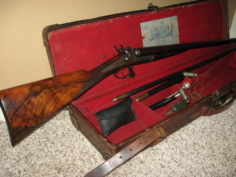 1867: 40 cal. Dbl Express rifle #7464 - Large scroll 2 Iron “Oxford” Damascus