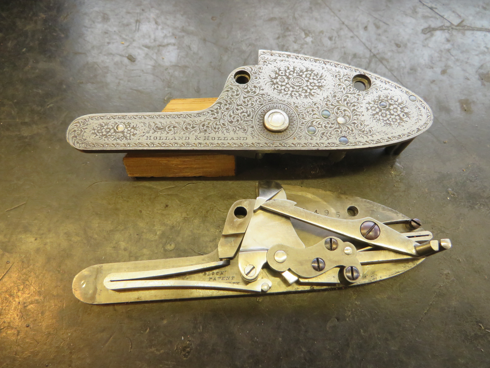 Obviously this is a later lock plate shape but still stamped 'Block Patent Safety' although the actual interceptor sear referred to has been replaced by the 'Spear' interceptor sear much utilised by John Robertson's London workshops (he built or at least finished many of the Royals for Hollands up until 1893).