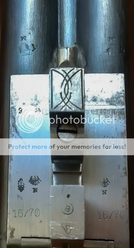 Raimey, I still do not see anything that gives any special meaning of the house mark being near the definitive nitro/normal proof mark, nor anything that requires them to be together. If it was required, wouldn't the house mark be next to the Bundes Adler N on the left barrel, as well as the right? My guess is the workman put it there as a matter of convenience. Mike