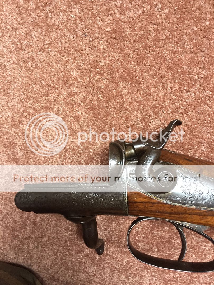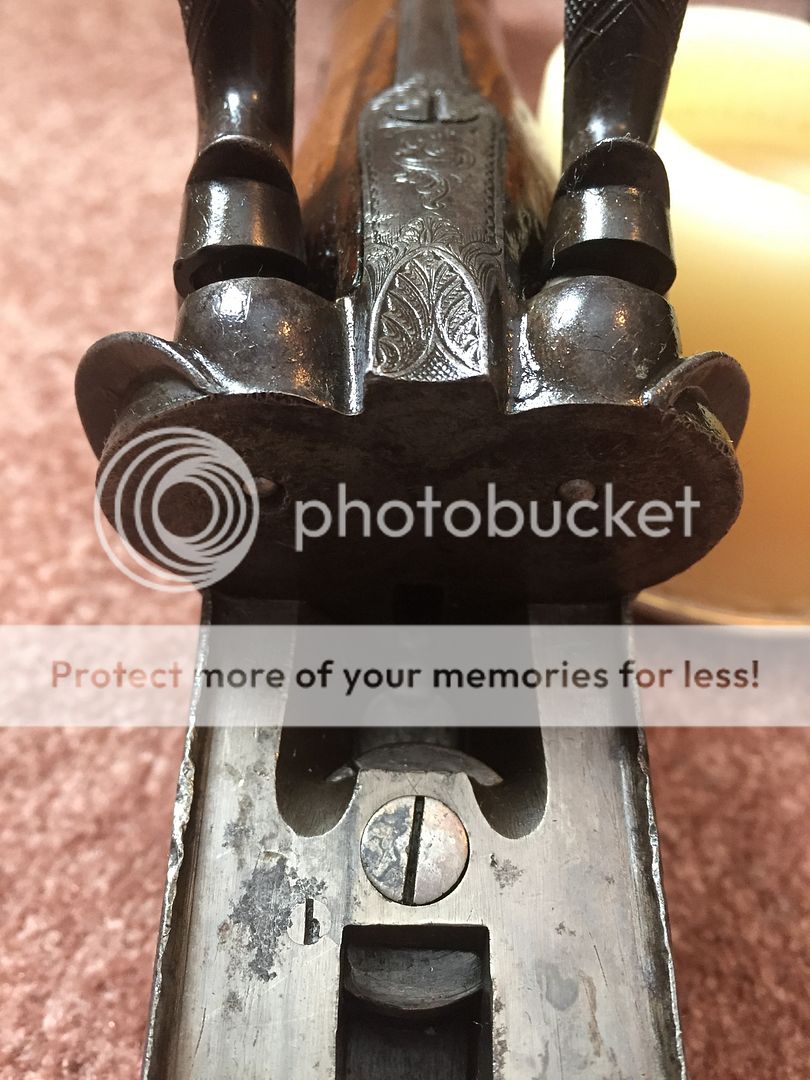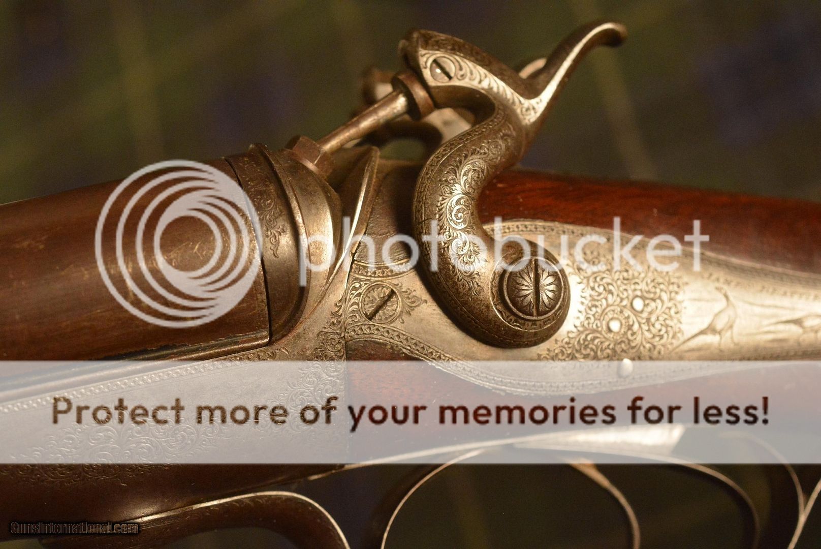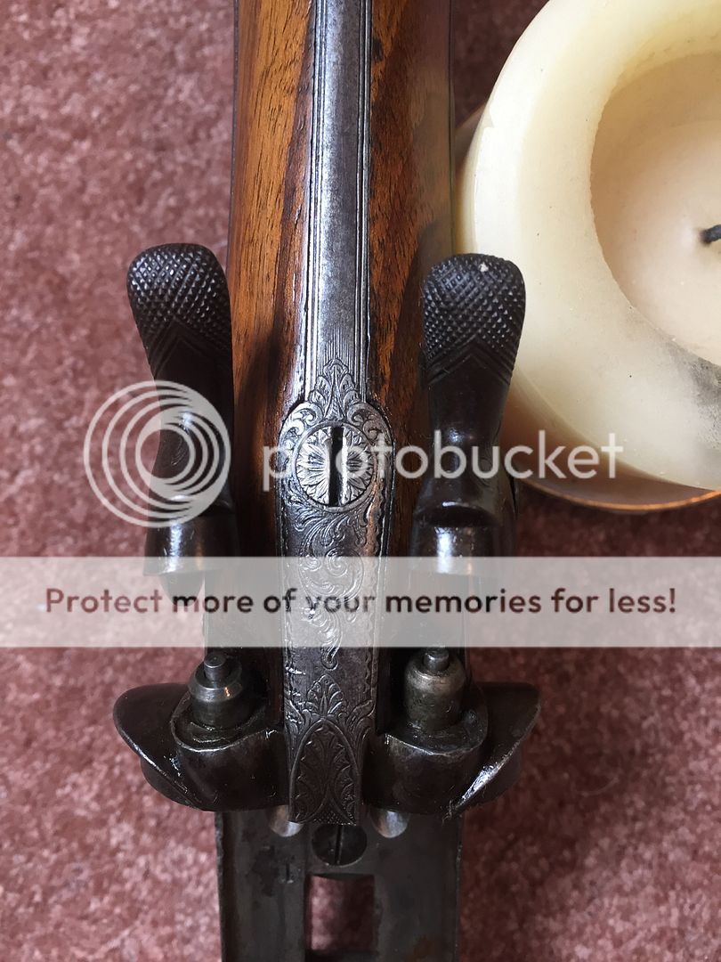 Very interesting and some similarities in the barrels and striker locations, and the long tangs, forearm and butt plate. The locks are quite different though with main springs in front of the hammers. I was wondering how mine could be valued and this one seems high to me for what it is. I can now see your point about how this percussion's configuration could be converted to centerfire. Nice find, OWD.