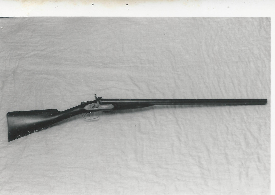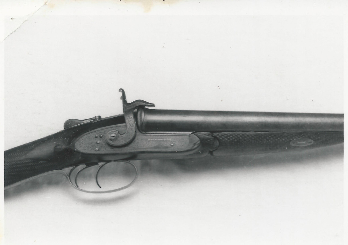 Hi All; I am putting up 4 old (ca 1983) black & white pictures of my W & C Scott & Son bar in wood pinfire 12 gauge. Mr John A Crawford identified this as being of A quality & built on Matthew's patent, likely between 1863/65. Two things he found of interest were that; #1 it was the only Scott gun he had ever had reference to made on Matthew's patent. #2 it was the only Scott gun he had ever encountered which did not have a serial number. Its Damascus barrels are 29 3/4" long, both Cylinder bored. I do not have its weight recorded. Top of the rib is marked Made for Benjamin D Kennedy, Louisville KY. Neither Birth nor Death certificates could be fond for Mr Kennedy in Louisville, but he did have a business license to operate a jewelry store for some length of time, which included the dates this gun was built.