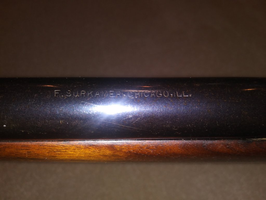 The firearm in question appears to be a custom made Mauser action bolt rifle chambered in .270 made by Fred Surkamer of Chicago, Illinois in the 1920s/1930s. It has a finished walnut stock, double set trigger, and a hinged floorplate. Pictures below, let me know if a better angle is needed.
