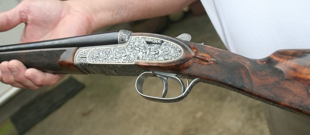 I appreciate all of the comments. The gun started off an AYA #2 in the white. I did the stock to the customers dimensions from a realy nice piece of Turkish Walnut, and the engraving was done ny Michael Collins (