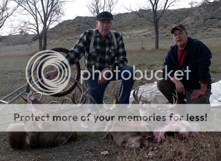 Don't want to hi=jack...don't think Barry will mind adding another dimension. This is Jerry at age 76 in October 2006 outside of Roundup, MT just a half mile from the Musselshell River. He is 6' 2" about 180 and hunts deer every fall. His rifle is a 7 mag pre-64 brld action in a custom Fisher stock (1967?) with the checkering worn flat. He says, "the rifling's worn pretty smooth." And was quoted in a magazine a while back as sayin he had, "shot a whole herd of mule deer," with that rifle. Jerry & I same hunt. For those who are curious, my knarly whitetail (right) is out in the back shop and measures 18" spread. Fisher's Mule Deer was a monster, extra knarly old 3 point buck, just as he is. (Jerry's hunting buddy Jim, of 30+ years, shot the deer in the middle.) http://  Best, Steve P.S.Barry, next time I'm up there I'm going to interview you!